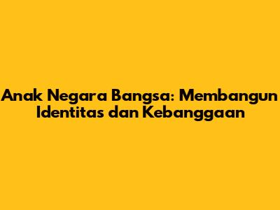 Anak Negara Bangsa: Membangun Identitas Dan Kebanggaan