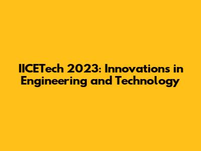 IICETech 2023: Innovations In Engineering And Technology